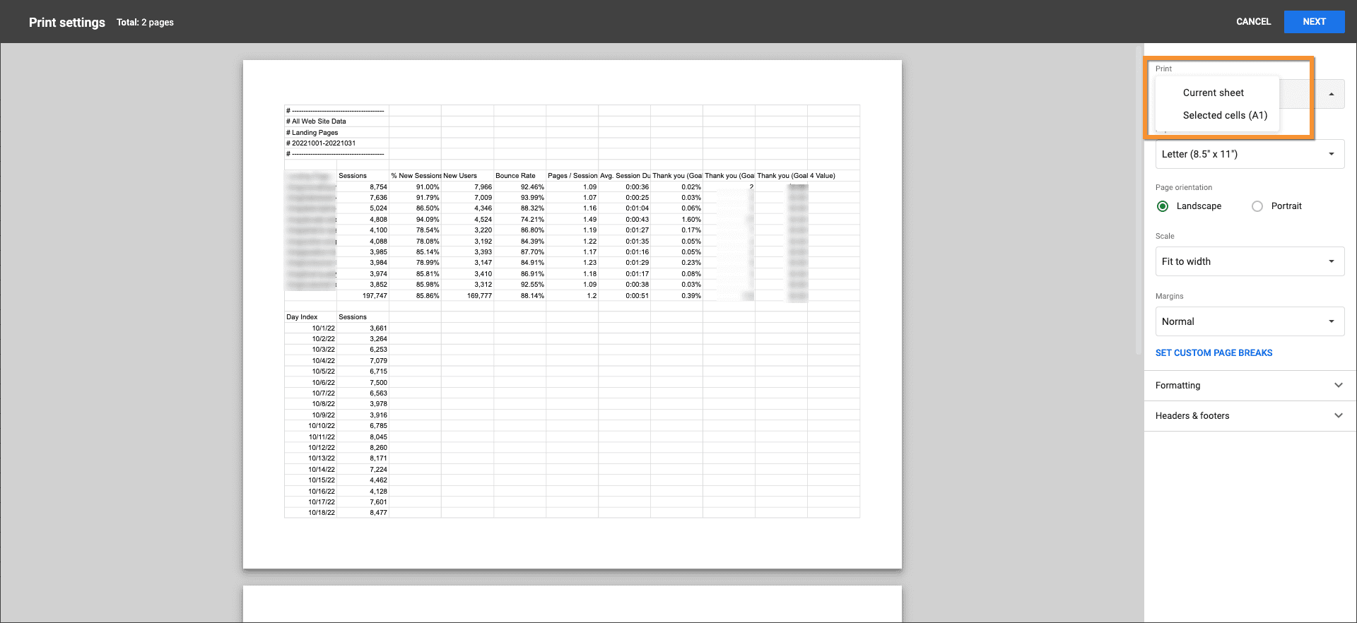 Understanding Print Areas in Google Sheets