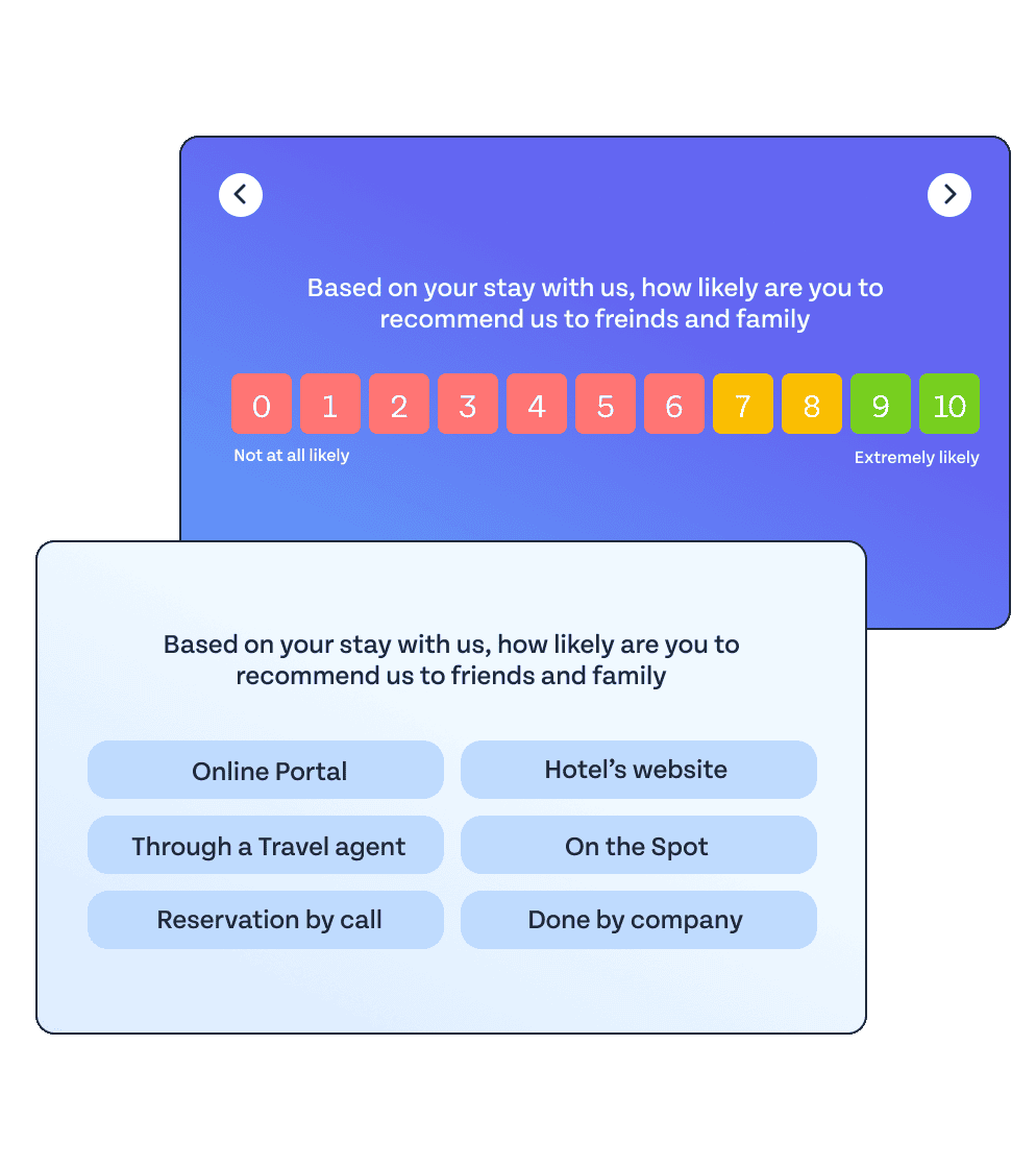 Measure guest feedback, analyze your staff's performance, and improve the overall hotel stay experience by capturing feedback during or after check-out with SurveySparrow Feedback.