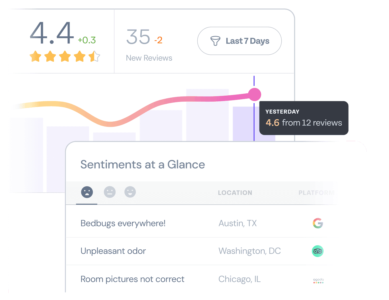 Critical alerts ensure negative reviews are addressed quickly.