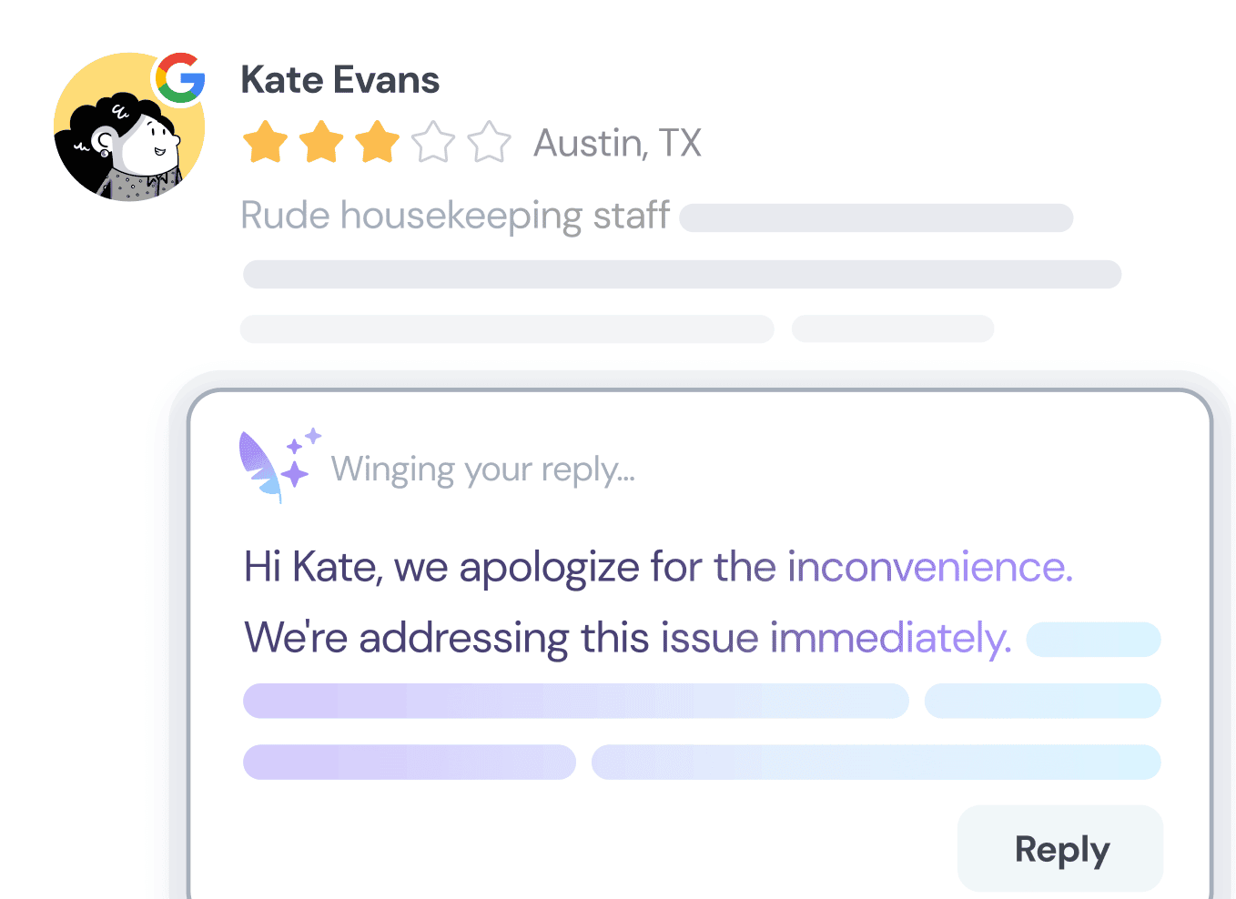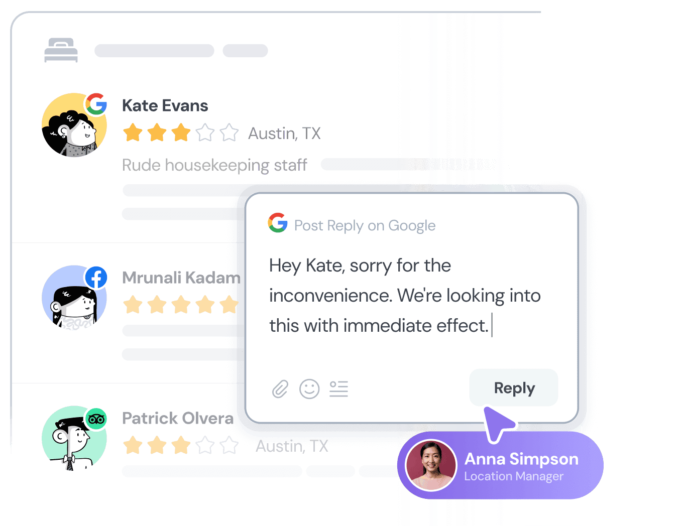 Operational Efficiency | Delayed responses and manual review management takes hours. | Automated responses and AI Replies ensure prompt responses, saves time and resources. |