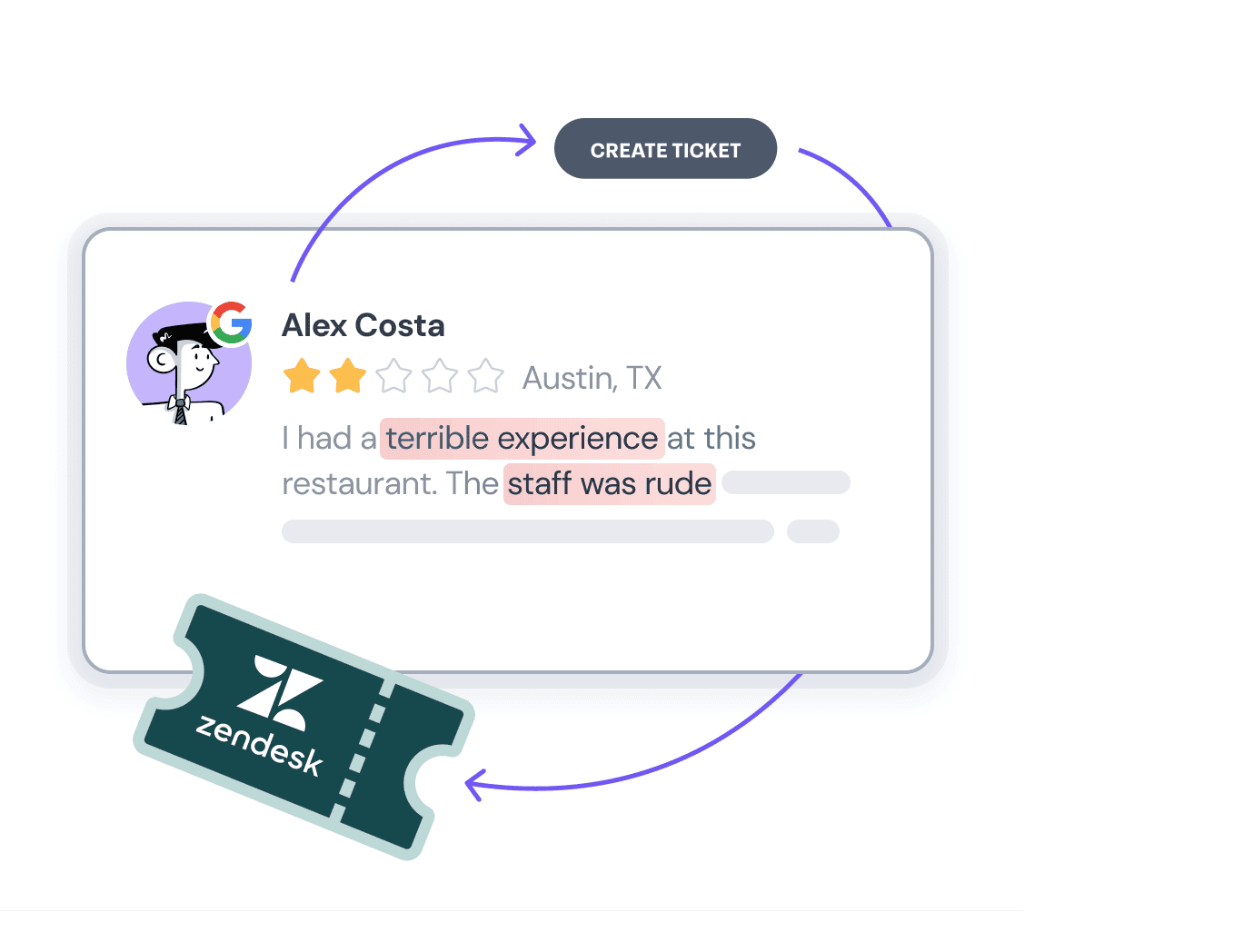Automatically turn negative online reviews into support tickets in Zendesk and other tools to ensure quick resolution and enhanced customer satisfaction.
