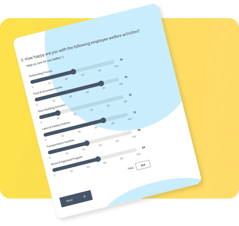 Stop guessing and start listening. SurveySparrow’s online survey maker lets you gather feedback with zero coding and 100% precision. Design beautiful surveys, distribute them across channels, and uncover what your audience truly thinks – all in one place.
