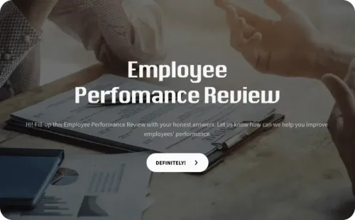 Design this employee work evaluation form with images, GIFs, and emojis to make it as conversational and interactive as possible. Choose a background image from our media library and match it with your company’s tone.