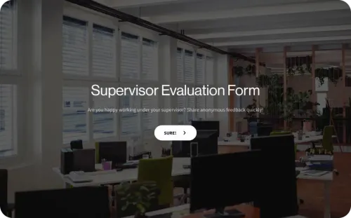 Own this sample supervisor performance evaluation form with our white labeling features. Customize the form to its entirety. Use your own background for the supervisor review form, replace SurveySparrow logo with your own brand, customize the font, and get your own custom link. Having your company name in the link makes it look more authentic.