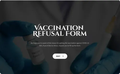 Use this vaccination refusal form for adults using multiple platforms like social media channels, emails, SMSes, or shareable QR codes.