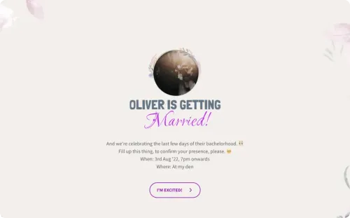 Guests can upload files directly through the questionnaire, such as photos or party suggestions. This interactive element personalizes the event planning and boosts guest involvement, making the bachelor party more memorable and engaging.