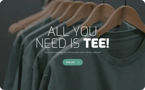 This T-shirt order form template can collect orders for T-shirts, formal shirts, tops, and trousers for your e-commerce store. Simply click the “Use this template” button, log in to SurveySparrow, and you’ll find this template in our order form builder.