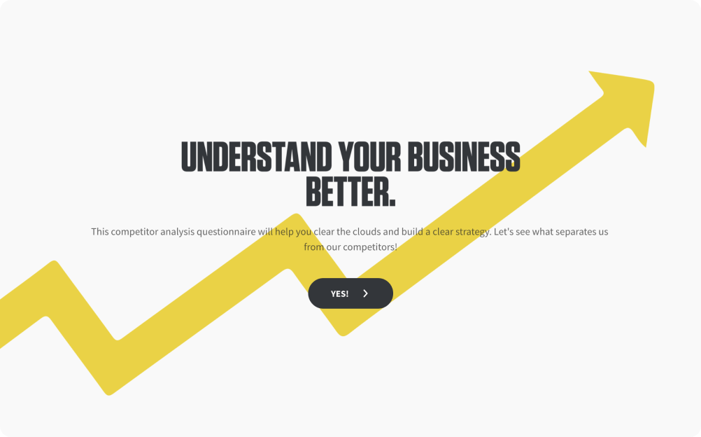 Customize this questionnaire in a conversational style, single-page form, multi-page form, or chat style. For simple competitor analysis, you can go with a single page design. For a detailed analysis, go with multi-page or conversational style. You can also have sections in the questionnaire.