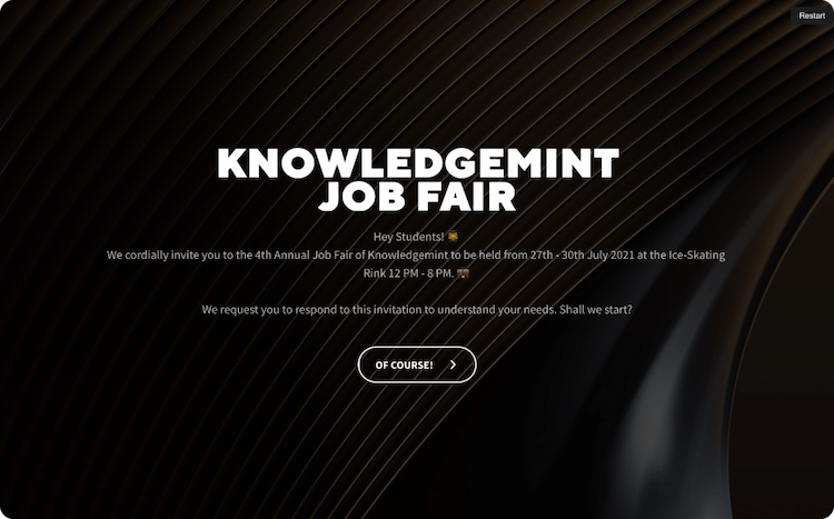 SurveySparrow allows you to create single page forms and multiple page forms. Single-page forms enable you to present a section of questions on a single page. Multiple-page format helps to project only one question at a time to your respondents, just like in the preview template up there.