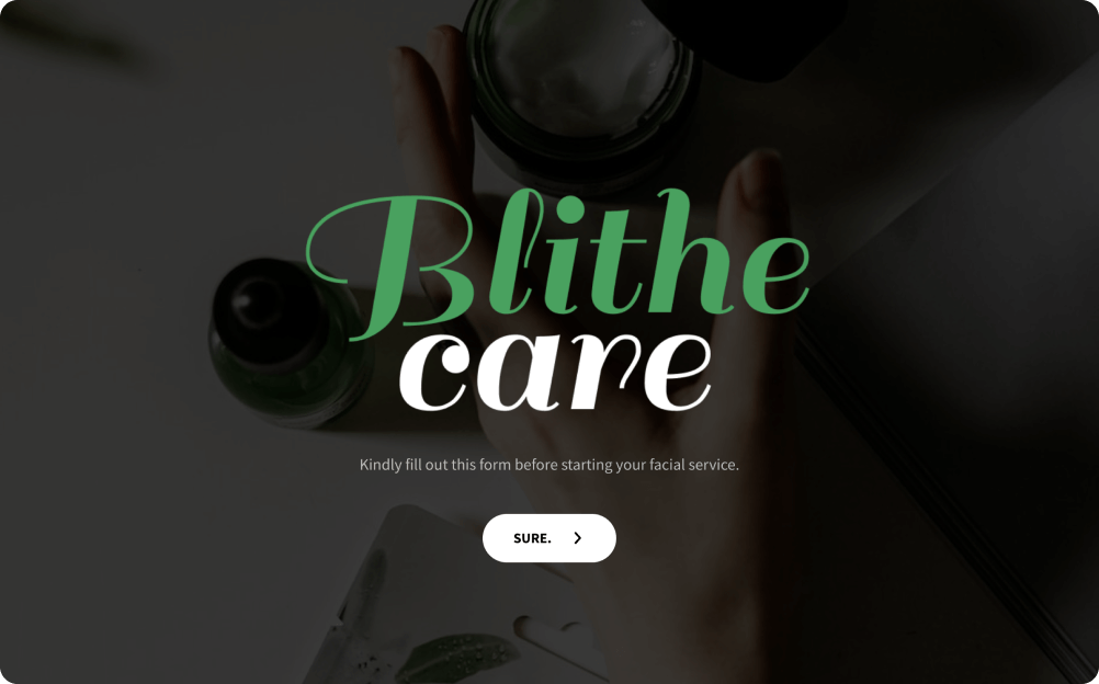 This facial intake form is easy to fill for the client because of its conversational interface. With one question at a time appearing on the screen, the form guides your client to share their details honestly. Using emojis, pictures, and interactive messages, you can enhance the form-filling experience of your clients. The mobile-friendliness of the form also gives flexibility for clients to fill on any device.