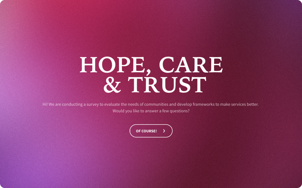 Sign up to open this template inside a survey builder. Modify the background, font, welcome screen, and questions to match your needs. Use AI features to get the tone right!