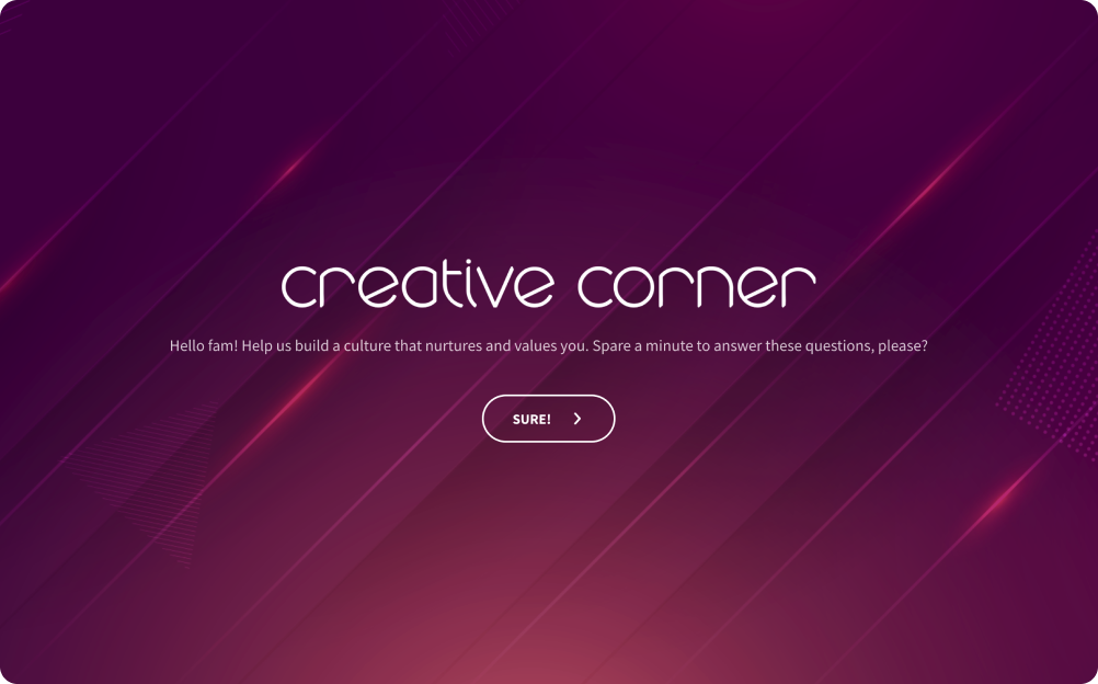 Integrate this survey into internal communication tools like Slack. Leave the technicalities to us, and you just hit a button to integrate your survey seamlessly.